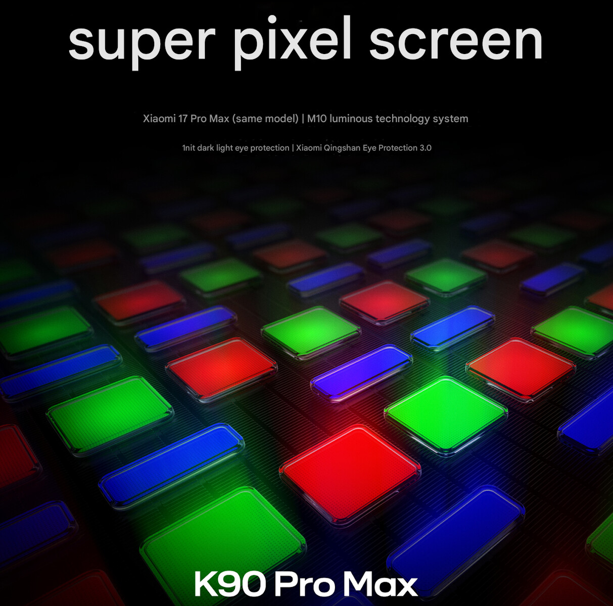 A empresa também compartilha que o K90 Pro Max apresenta uma tela de 6,9 polegadas que supostamente oferece a mesma experiência que a tela do Xiaomi 17 Pro Max(disponível na TradingShenzhen). Com o "Qingshan Eye Protection 3.0", suporte de brilho de 1 nit e escurecimento total de CC, o painel garante uma visualização confortável em ambientes desafiadores.