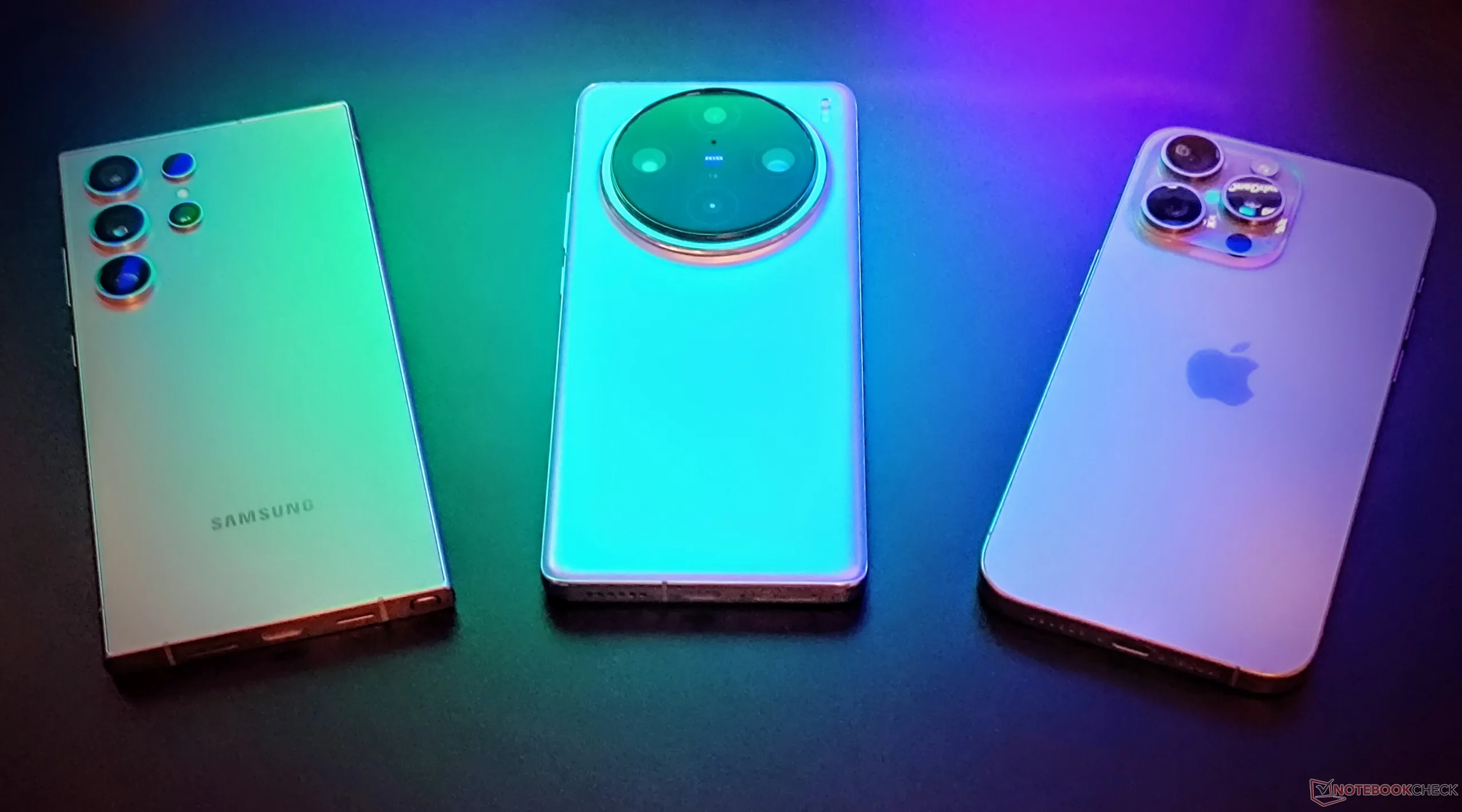 O iPhone 15 Pro Max usa o processador personalizado Apple A17 Pro com um hexa-core com clock de até 3,77 GHz e apresenta uma arquitetura de GPU de 6 núcleos totalmente nova. O Galaxy S24 Ultra executa o Qualcomm Snapdragon 8 Gen 3 (SD8G3) com uma configuração clássica big.LITTLE octa-core com clock de até 3,4 GHz e uma GPU Adreno 750 com clock de até 1 GHz. O Vivo X100 Pro executa o MediaTek Dimensity 9300 (D9300) com um arco octa-core não convencional "todo grande" com clock de até 3,25 GHz com 4 núcleos grandes e 4 núcleos médios. Seu Mali G720-Immortalis apresenta uma configuração de 12 núcleos.