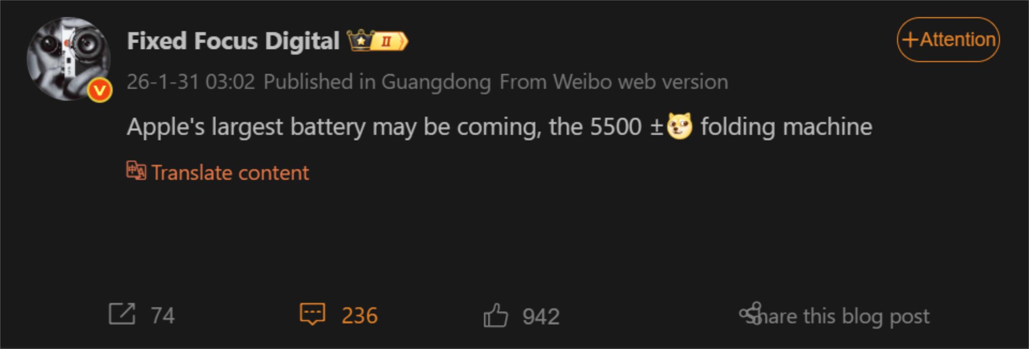 Por exemplo, a Fixed Focus Digital informou recentemente aos seus seguidores que o iPhone Fold será fornecido com a maior bateria de qualquer iPhone até hoje. Escrevendo no Weibo, eles afirmaram que o iPhone Fold chegará com uma bateria de cerca de 5.500 mah.