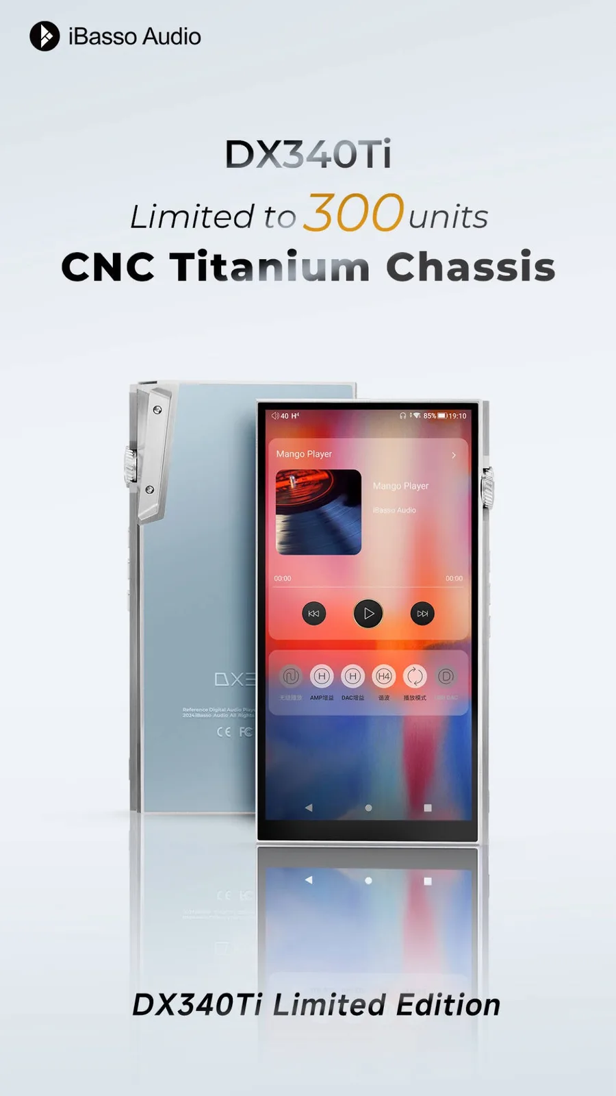 O principal tocador de música iBasso DX340 vem de fábrica com um chassi de aço inoxidável de 486 gramas, mas a Titanium Limited Edition o substitui por titânio fresado por CNC. O design é incomum mesmo além do material do chassi: ao soltar dois parafusos na parte inferior, o módulo amplificador AMP15 pode ser removido e substituído por qualquer módulo iBasso AMP1x.