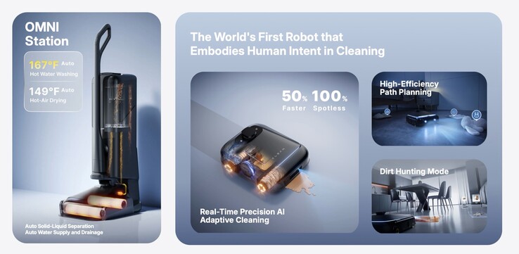 Essa configuração aparentemente permite que o robô limpe completamente os pisos 50% mais rápido do que os robôs com apenas um rolo. A estação base limpa os dois rolos com água quente a 167°F e depois os seca com ar quente. A estação também esvazia a lixeira e carrega o robô. A xLean Robotics anuncia uma potência de sucção de 17.000 Pa, mas o TR1 também pretende superar os concorrentes em termos de navegação. Para isso, o fabricante combina um scanner LiDAR de 360 graus com um sistema de câmera 3D que funciona com pouca luz graças a dois faróis embutidos.